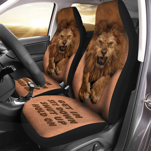 Angry Lion Hold on Funny Car Seat Covers Universal Fit Set 2